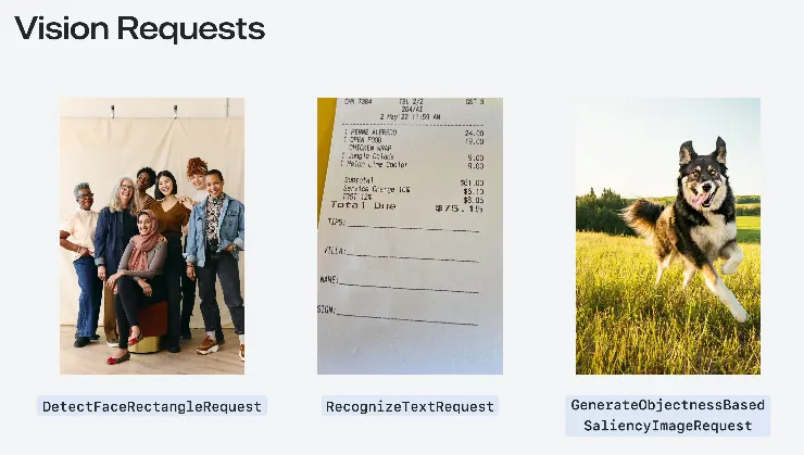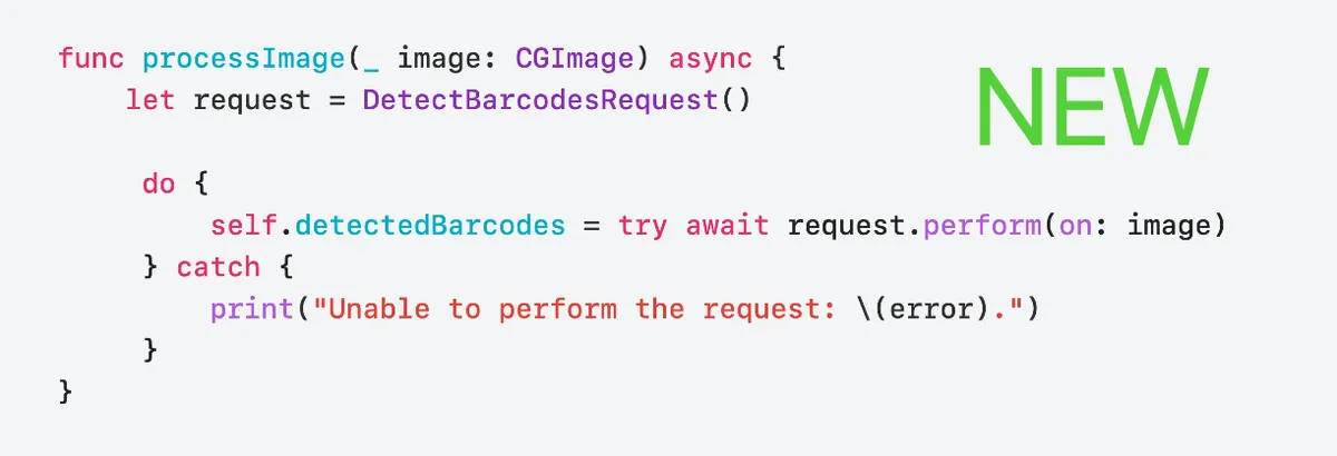 Apple 在這次的更新當中提供了新的 Swift Vision API 封裝給開發者使用,除了基本的包含原本的功能支援之外,主要針對加強 Swift 6 / Swift Concurrency 的特性,提供效能更優、寫起來更 Swift 的 API 操作方式。