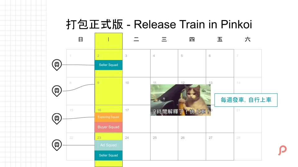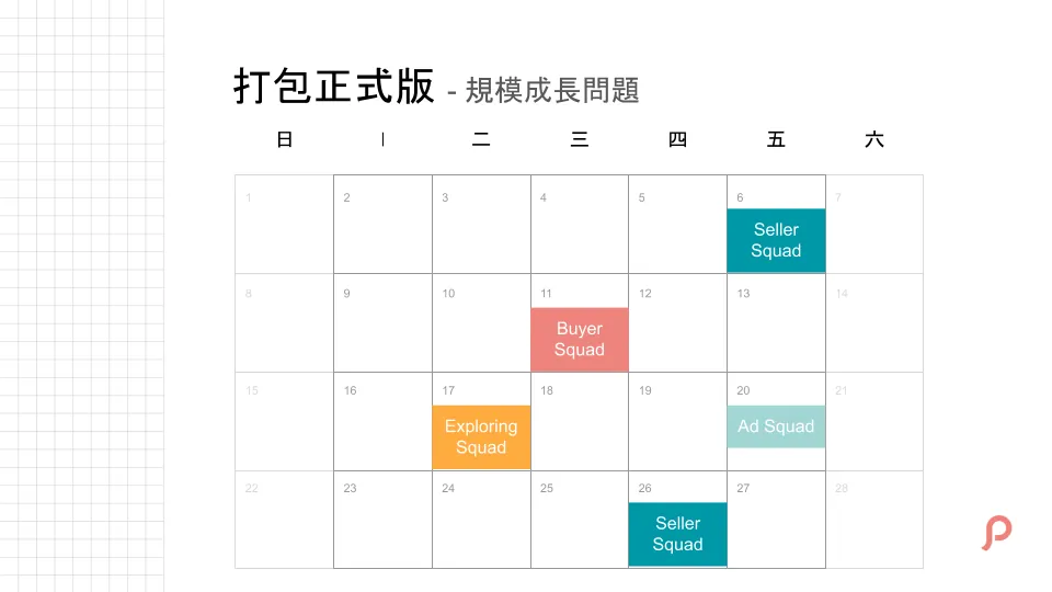 Pinkoi 的工作方式是由多个 Squad (小队)组成: