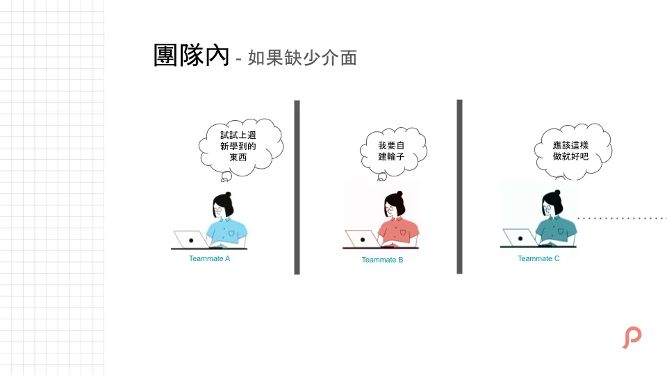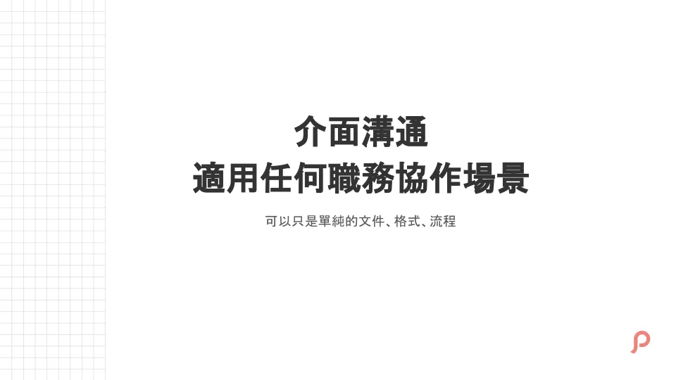 使用这个「介面」作为彼此沟通的桥梁,介面可以有多个,什么场景就用什么介面;遇到相同场景优先使用这个介面来做初步沟通;如果还有需求要沟通,可以基于这个介面深入聚焦的讨论问题。
