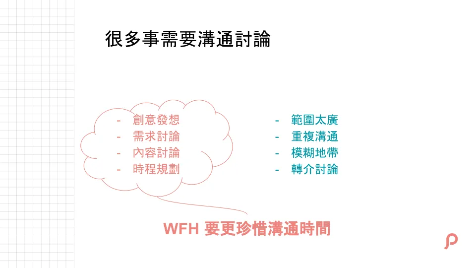 第一步是找出什么地方是模糊的、每次都要重复确认的沟通,或是需要什么沟通才能更聚焦有效,甚至只需要这个交付就不需要额外沟通的事。