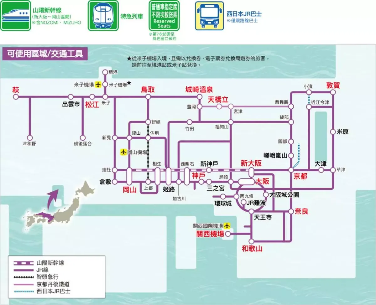 - 關西&山陰地區鐵路周遊券 JRPass (岡山機場進出最佳選擇)
