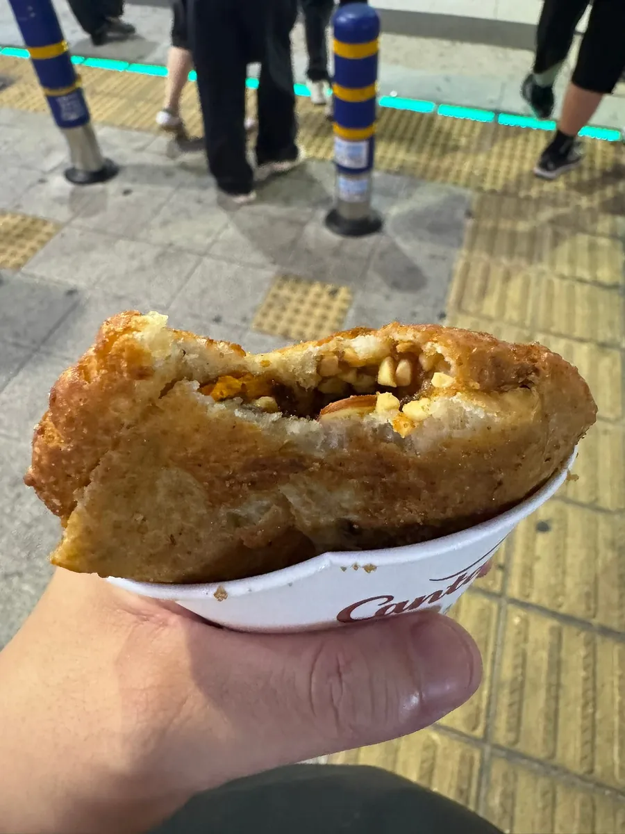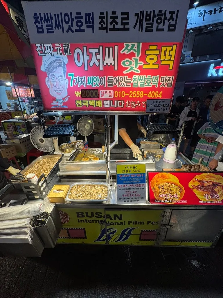 回飯店前買了 BIFF 廣場蠻多人排的 種子糖餅 ,我覺得很油很甜不怎麼樣。