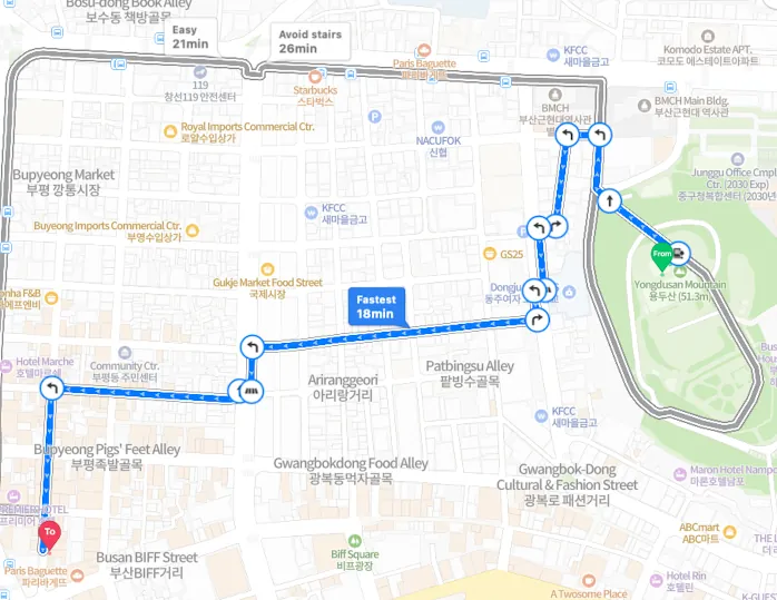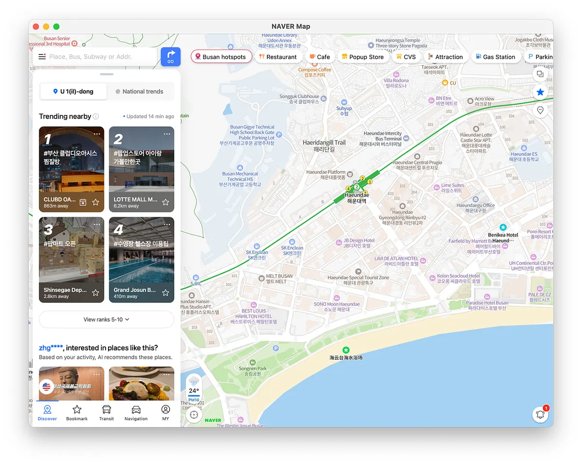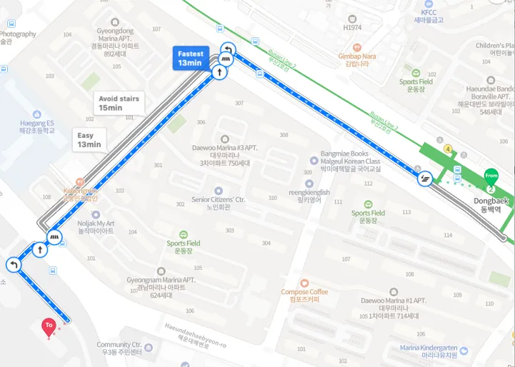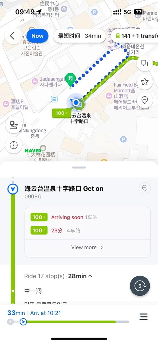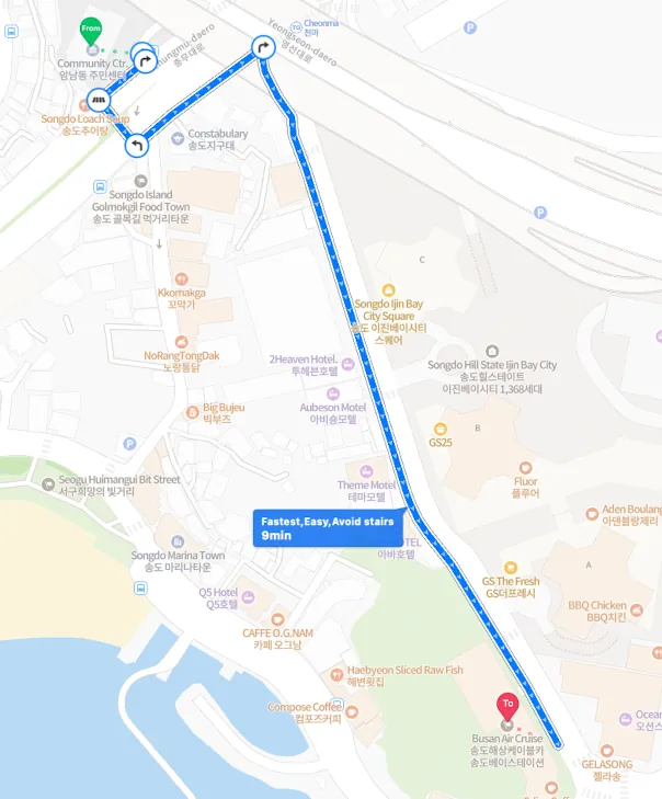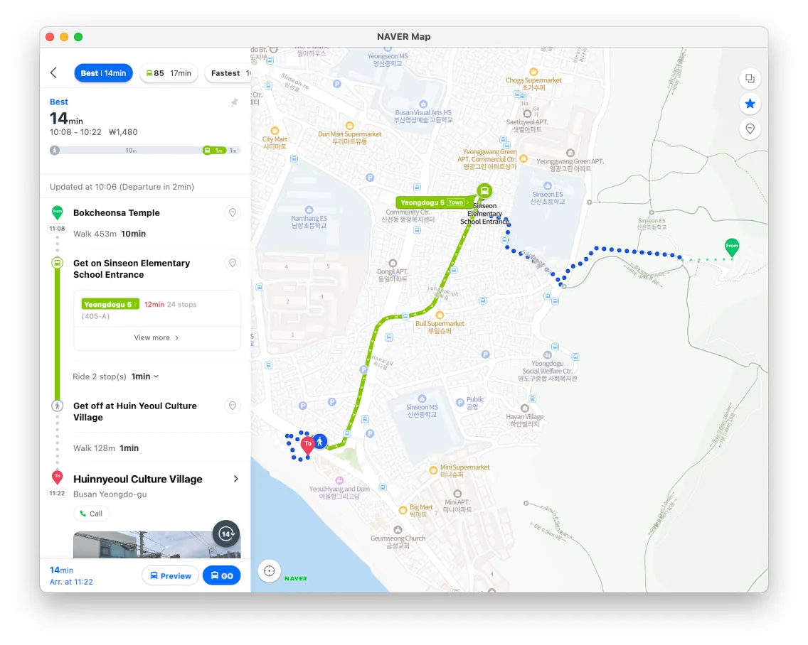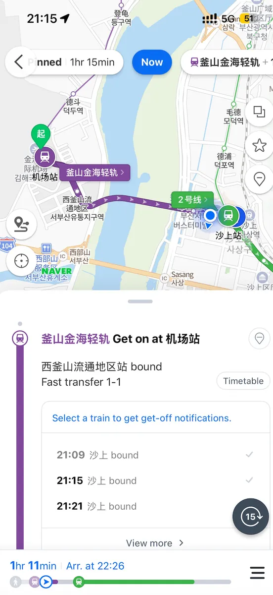 不管是哪一種都建議行前先在台灣用信用卡(因為有可能只支援某些發卡機構)先加值好或是攜帶一些現金到韓國用機台加值。 Naver Map