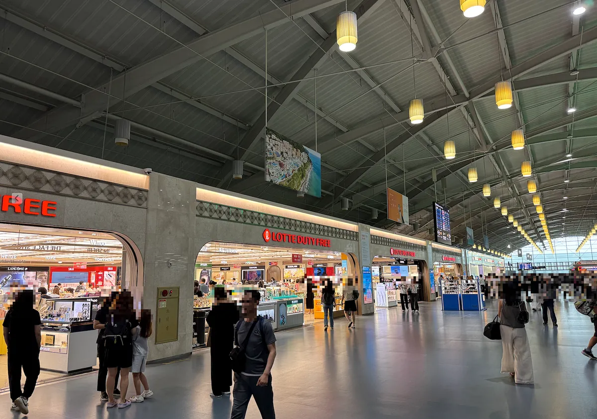 出境大廳不大,就一排而已;有幾家免稅店跟一家超商跟咖啡廳,賣少許吃的。(如果很餓記得在外面吃完再出境)