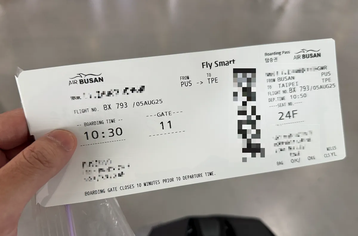 - 回程:08/05(二) 釜山金海(PUS) 10:50 -> 台北桃園(TPE) 12:35