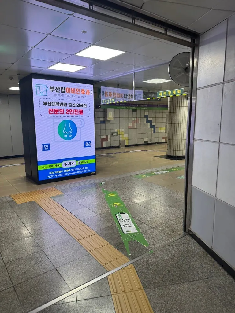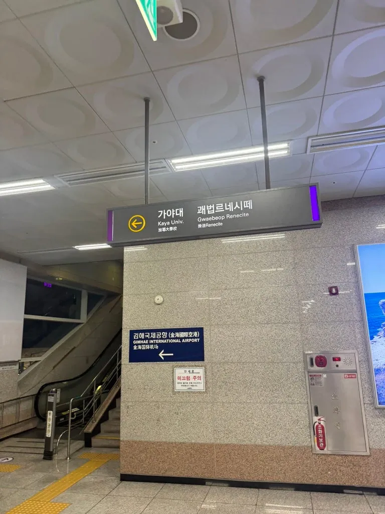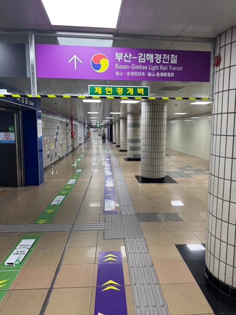 飯店在機場的上一站 — 西釜山流通地区站,對街有 CU/GS25 超商。