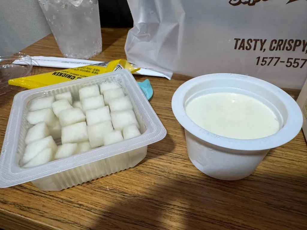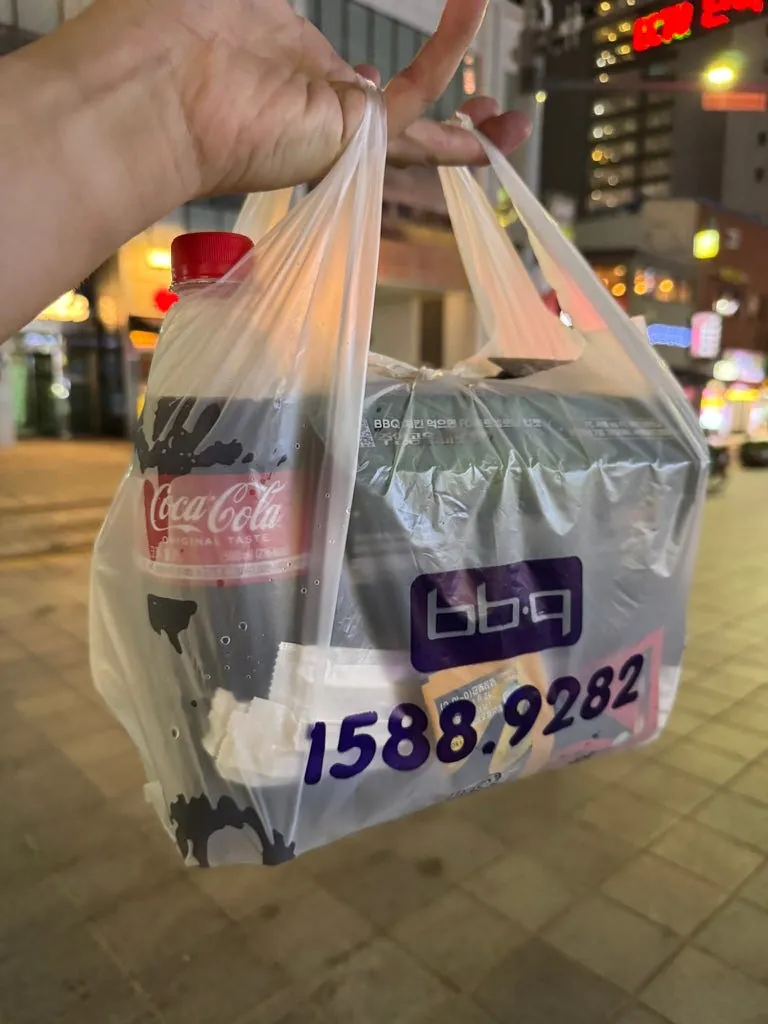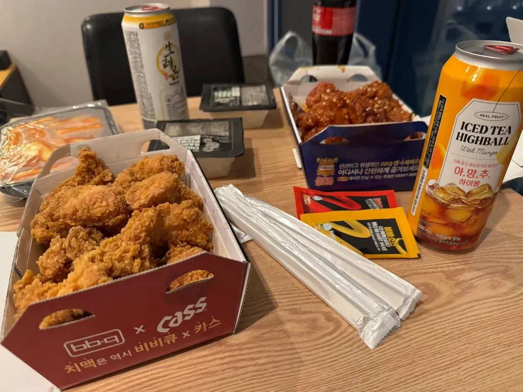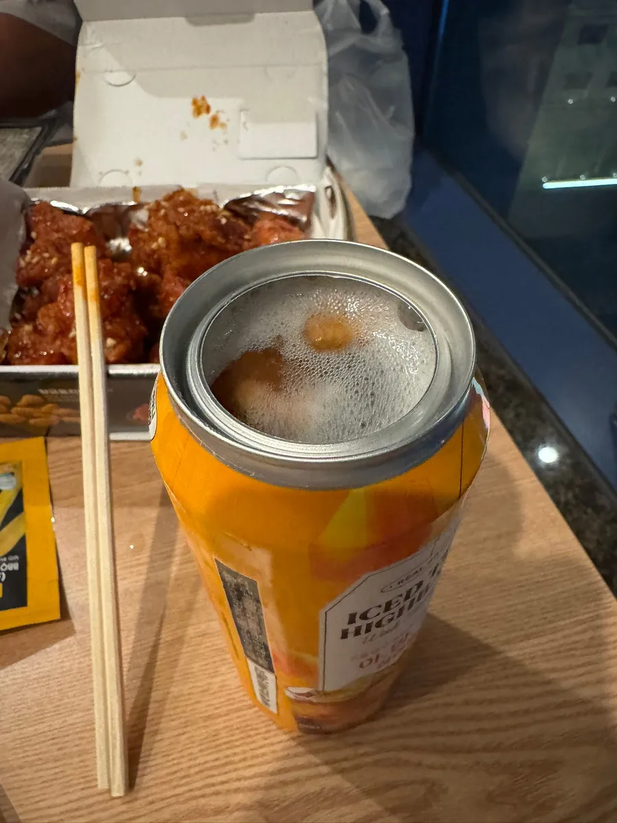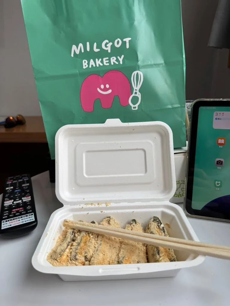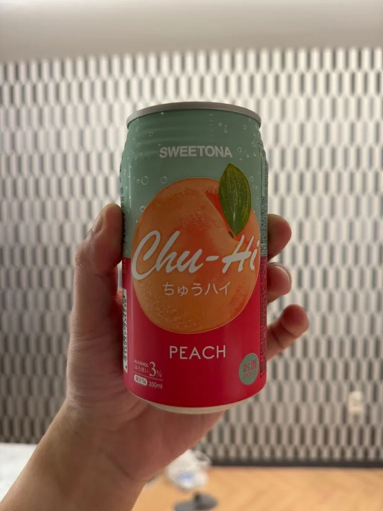去超商買了水蜜桃酒配剛剛買的章魚燒,我覺得這個章魚燒很讚,雖然帶回來已經軟掉,但是他是黑色墨魚漿為基底、台灣章魚燒的脆感配上韓式的辣醬,很好吃。😋