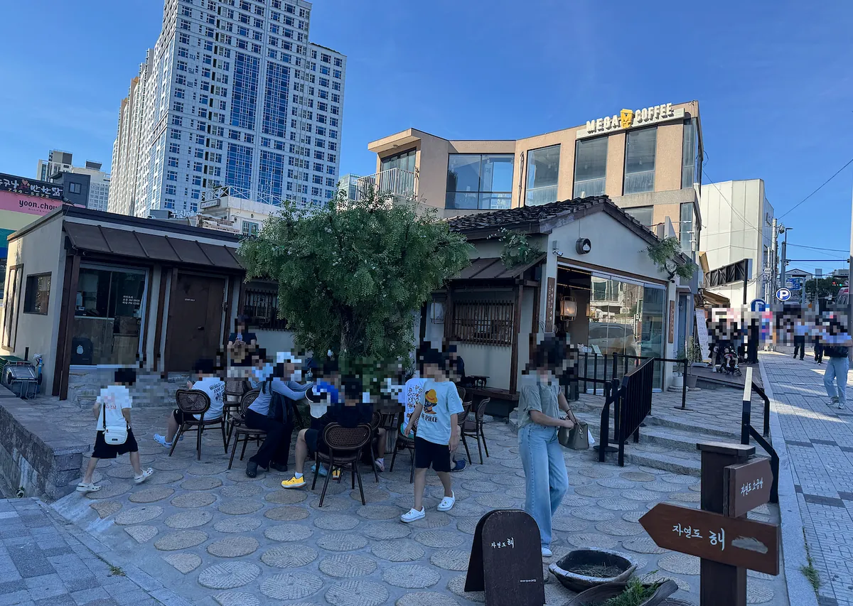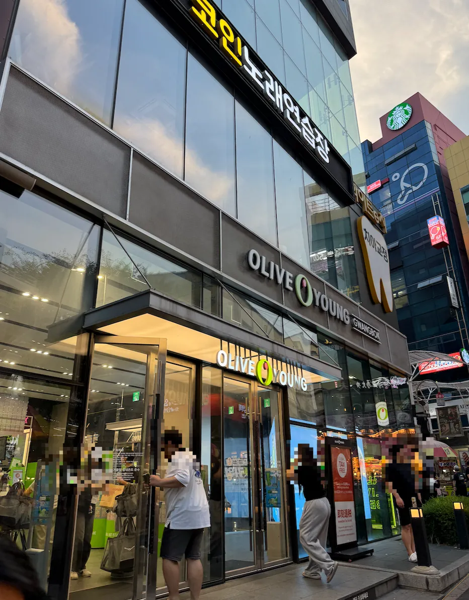 田浦站出來就能看到往田浦咖啡街的指示牌,出來這邊有一家獨棟的 Olive Young。