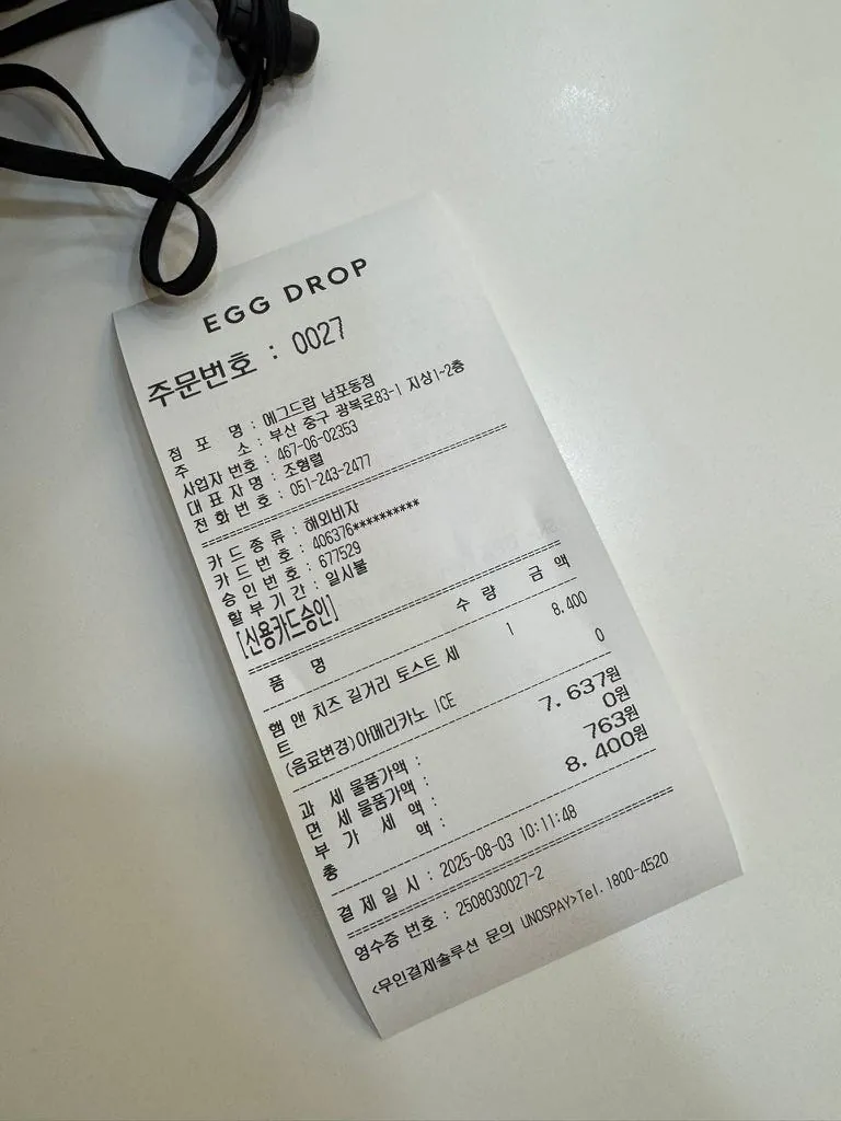 被收了 $6,000 + $7,000 韓元 (約 NT$280)。