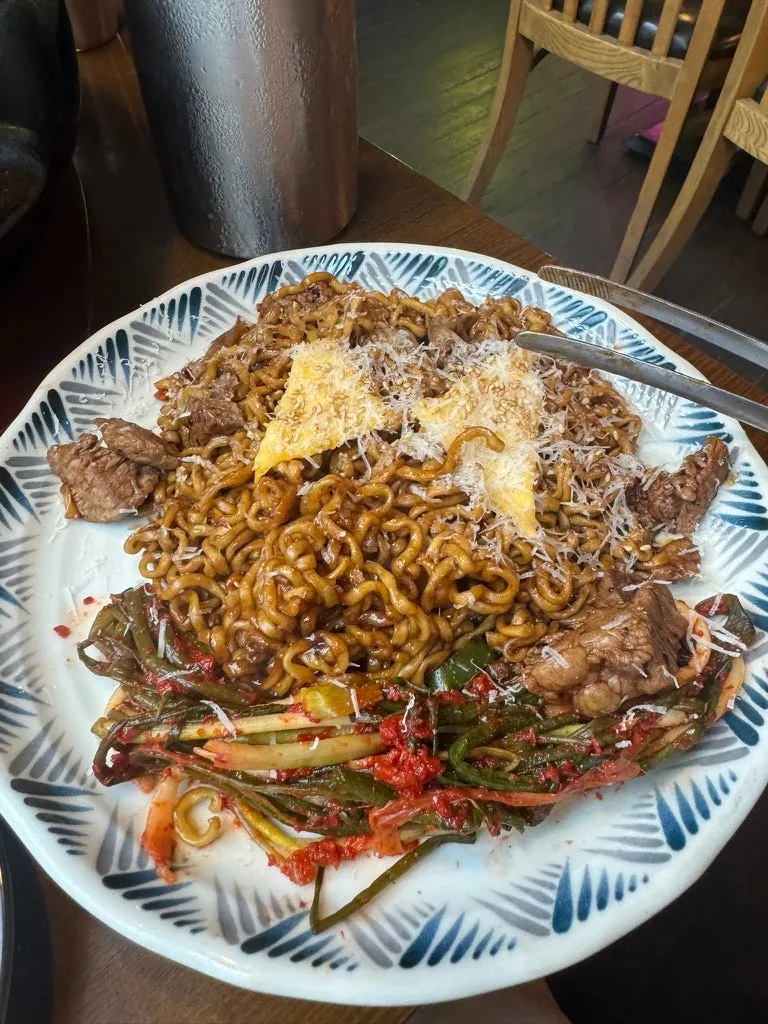 點了一份韓牛 Set+炸醬麵+Cass 啤酒,韓牛嫩但沒什麼牛味,我覺得普普;加上 價格實刷 NT$2,458 C/P 值不太高 ,不如前幾天吃的喉嚨鍋蓋烤肉。