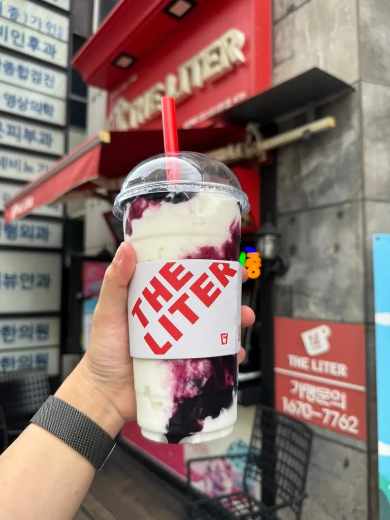 再去買了一杯 Liter 藍莓冰沙優格解膩。