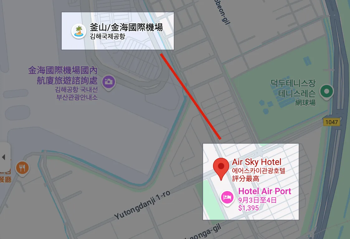 從飯店出來搭一站就到達機場 (約 10 分鐘)。