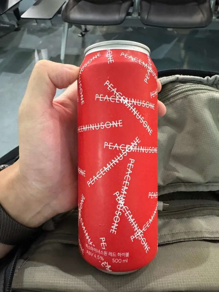 不知道要買什麼,去超商買了兩罐 GD 酒帶回台灣。