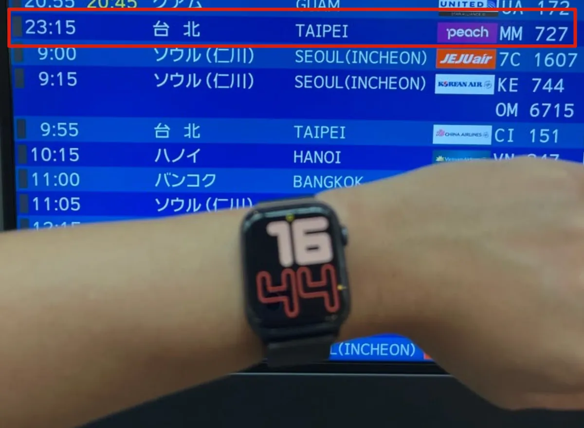 因為班機延誤,原本預訂 23:15,延誤到 23:50;約 00:15 才起飛。