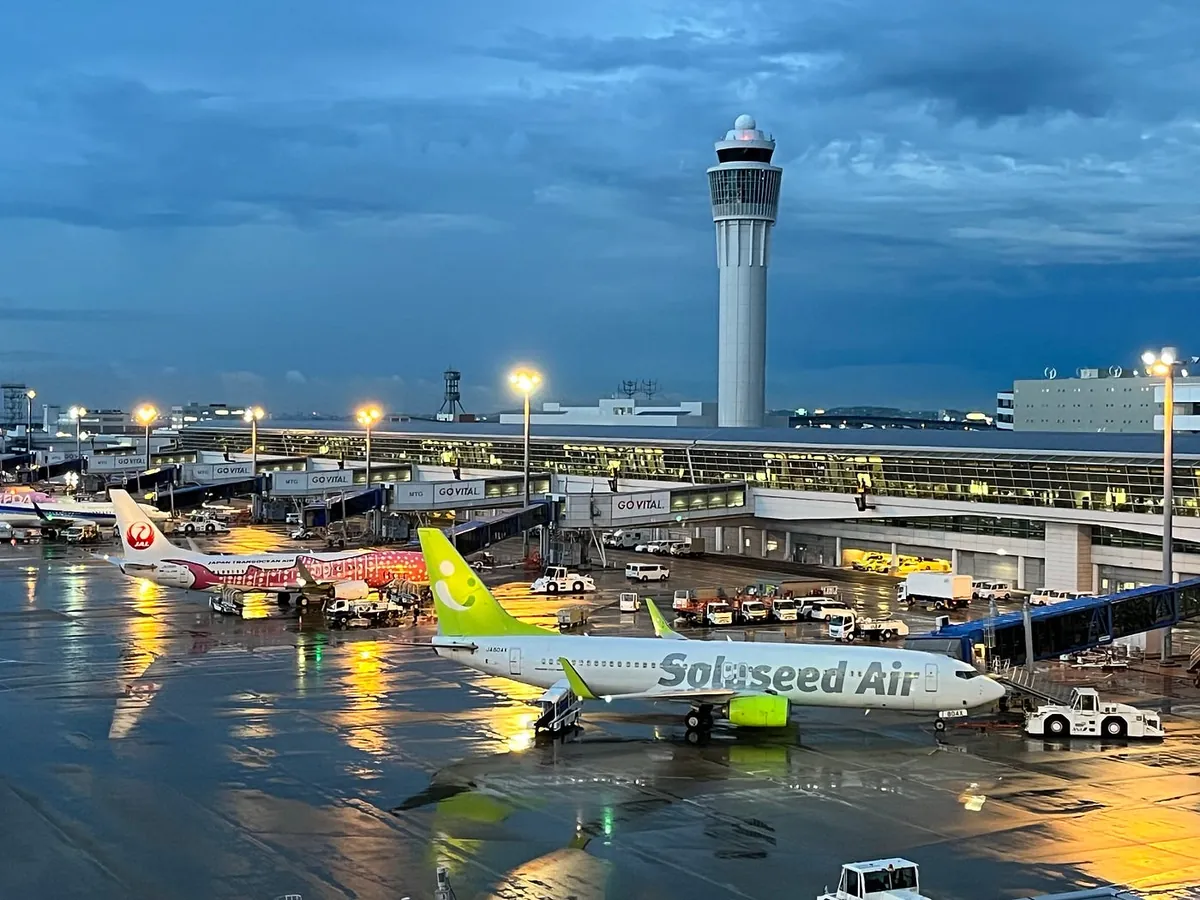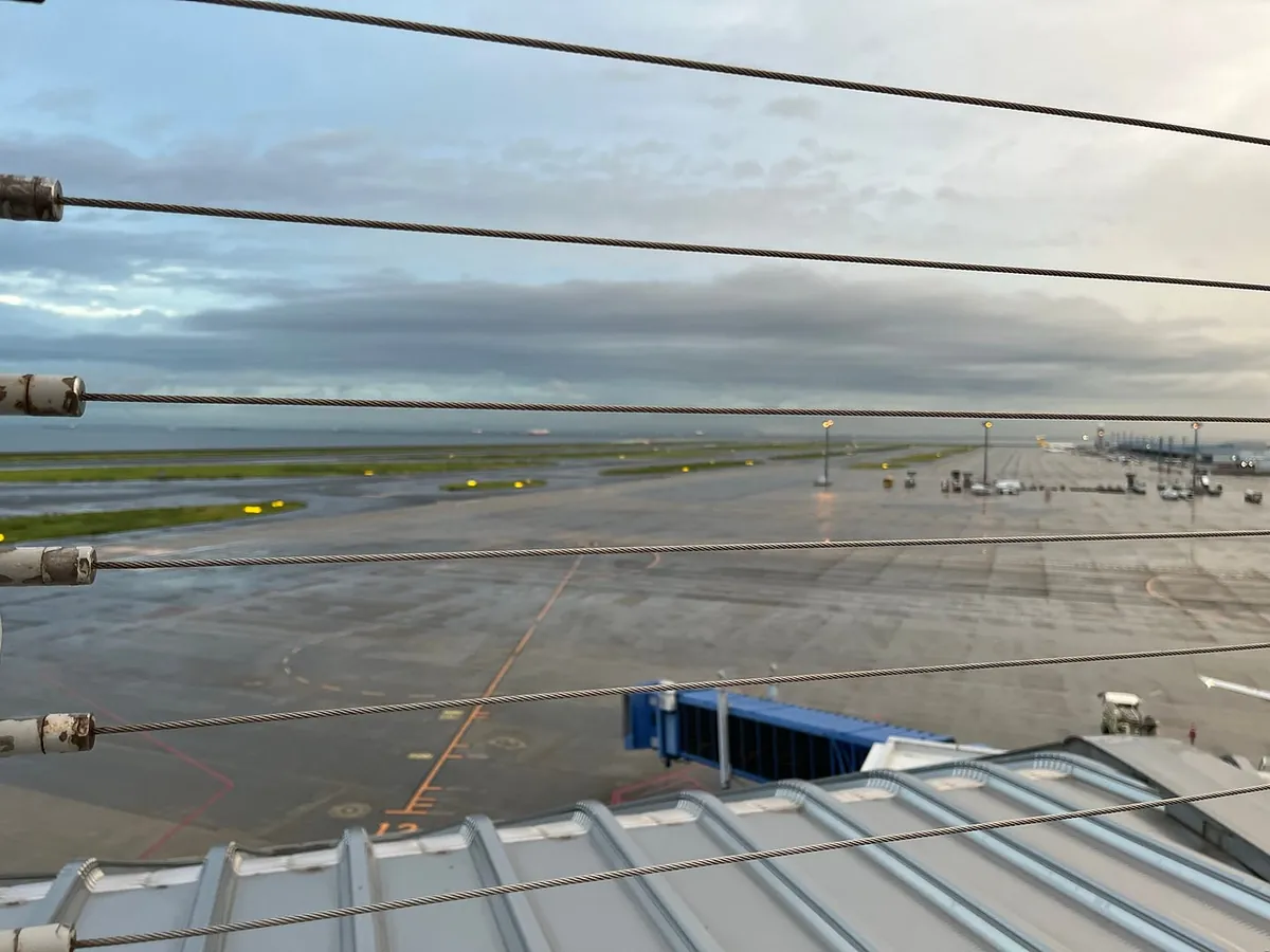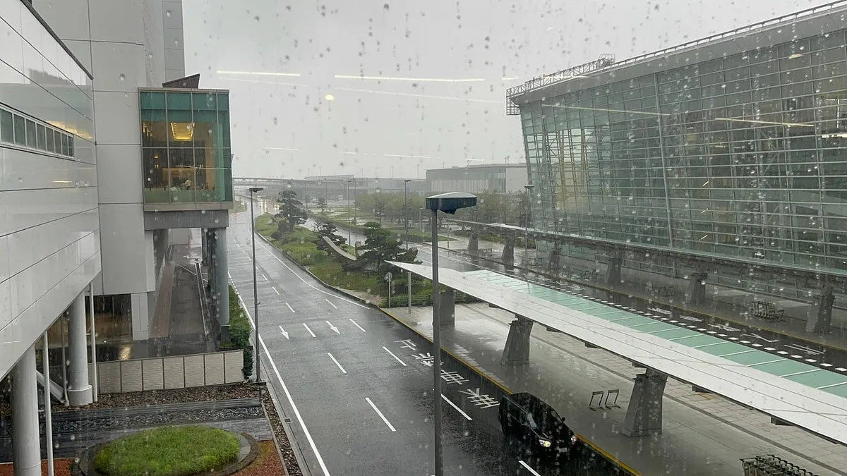 可能是一大早+不需要提領行李,從飛機落地到入境只花不到 15 分鐘;但是天空不作美,名古屋正在下大雨。