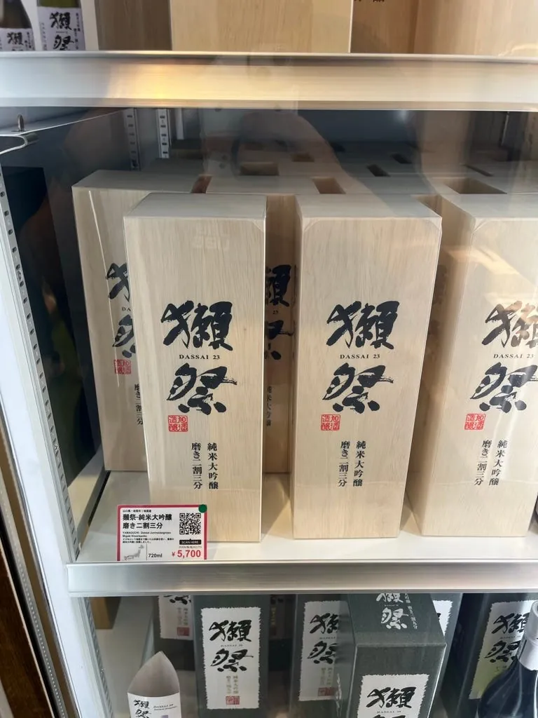 我只有一個包包所以可以再手提一個,就順手再買了一瓶獺祭二割三分 750 ml 回台灣了。(5,700 日圓,比東京貴 100 日圓)
