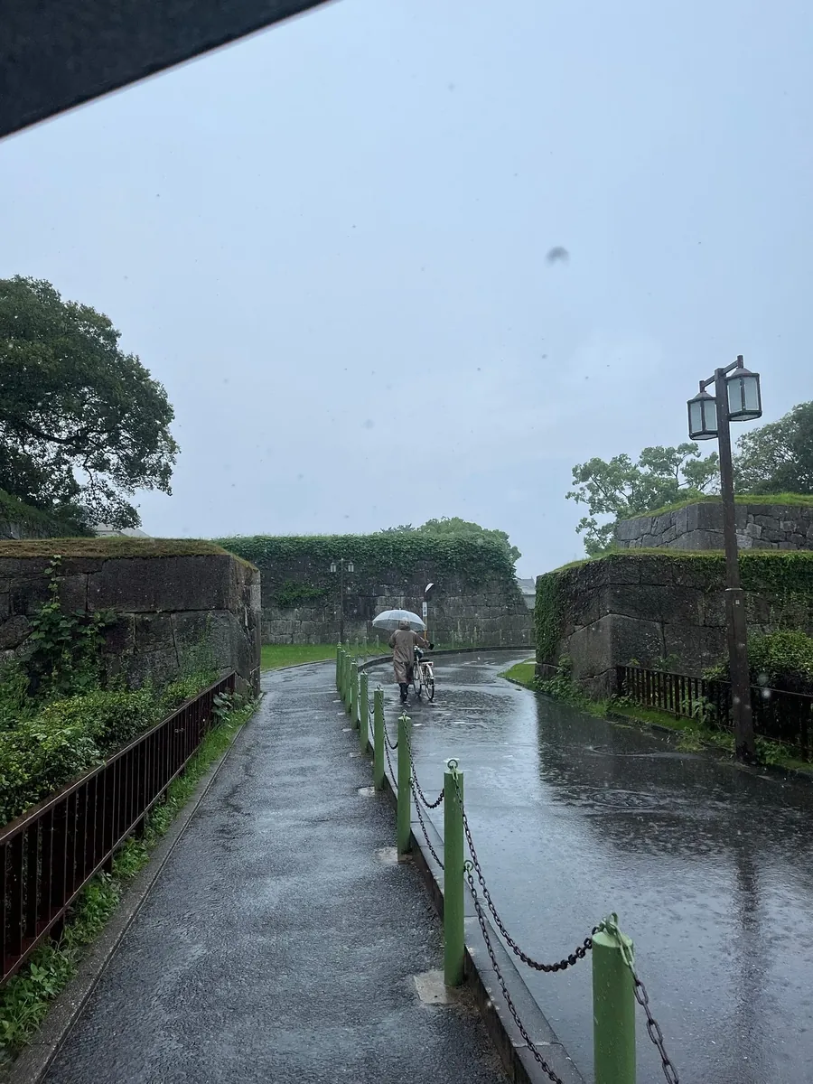 出車站發現外面正下起大雨,我沒料到日本會下雨,沒帶雨傘;附近很空曠沒看到超商,最後在名古屋城站地下街往對面名古屋市役所的 B1 找到全家超商,買了一隻雨傘繼續前往名古屋城!