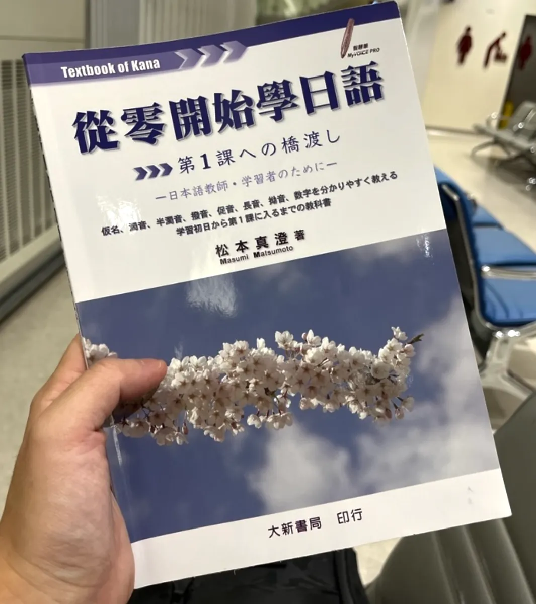 來的真的太早了,候機室沒什麼人;椅子是兩個兩個一組,很難躺著睡(很醜,我拍完照就起來了)、仰著睡也不舒服、還有候機室冷氣很冷;不過那時候精神還算好,沒什麼睡意,後面時間越來越接近人也越來越多,吵雜聲越來越大,就更難睡了;因此就只有閉目養神儲存精力、翻翻日文基礎(五十音),想說上飛機在睡一波。