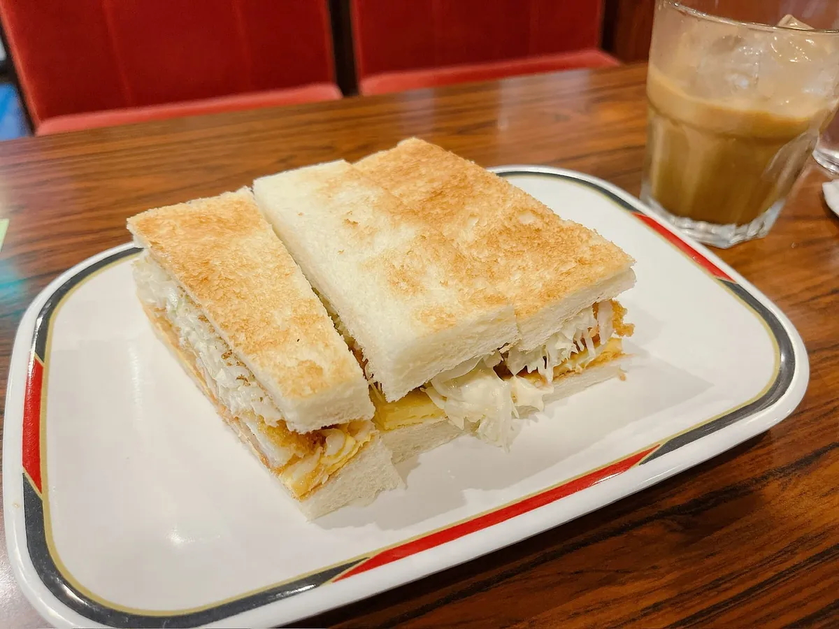 咖啡是必須的,畢竟整晚沒睡;炸蝦吐司的蝦是真的整之下去切成的,吃得到蝦肉的 Q 彈。