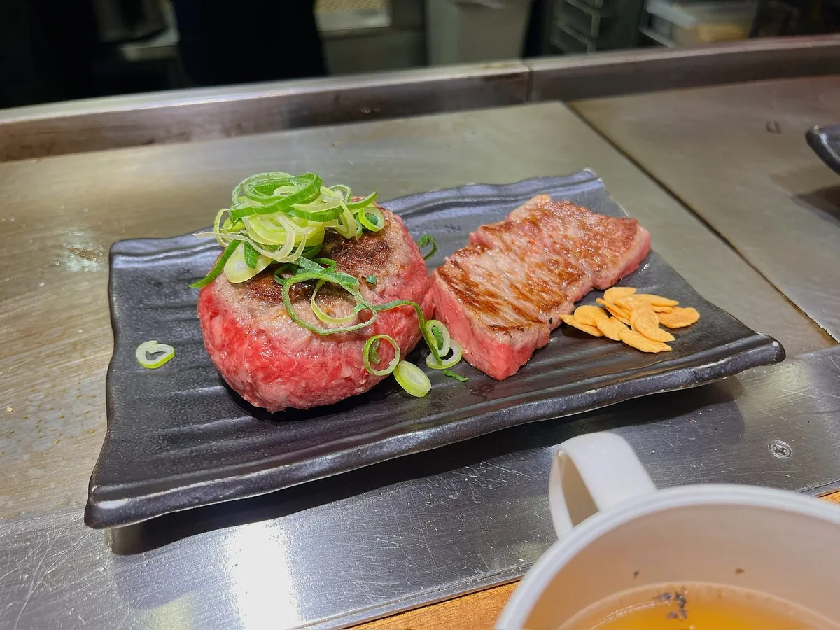 我点的是神户牛汉堡肉+神户牛排+汤饭冰淇淋的套餐组合 ($3,355 日圆):