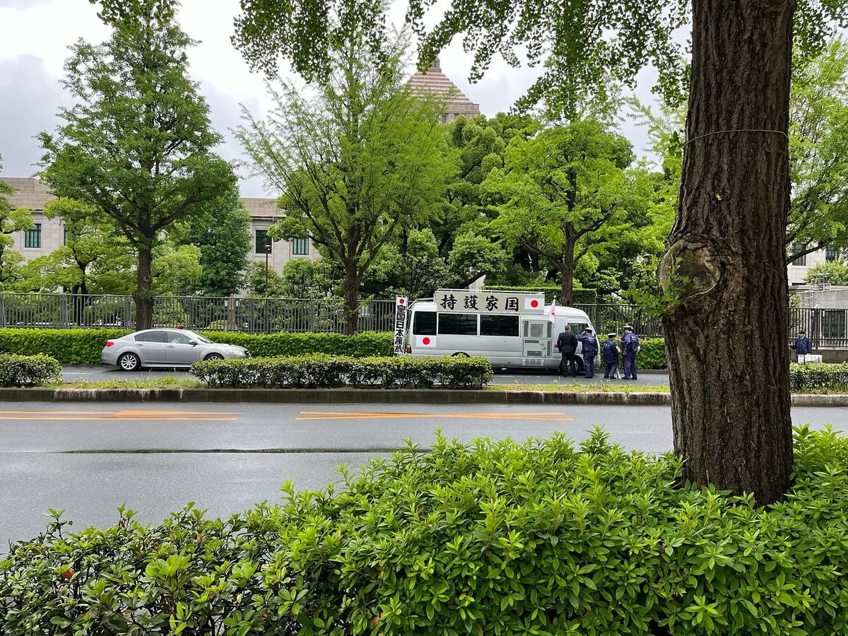 趣事之一是在路上遇到日本极端主义的抗议: