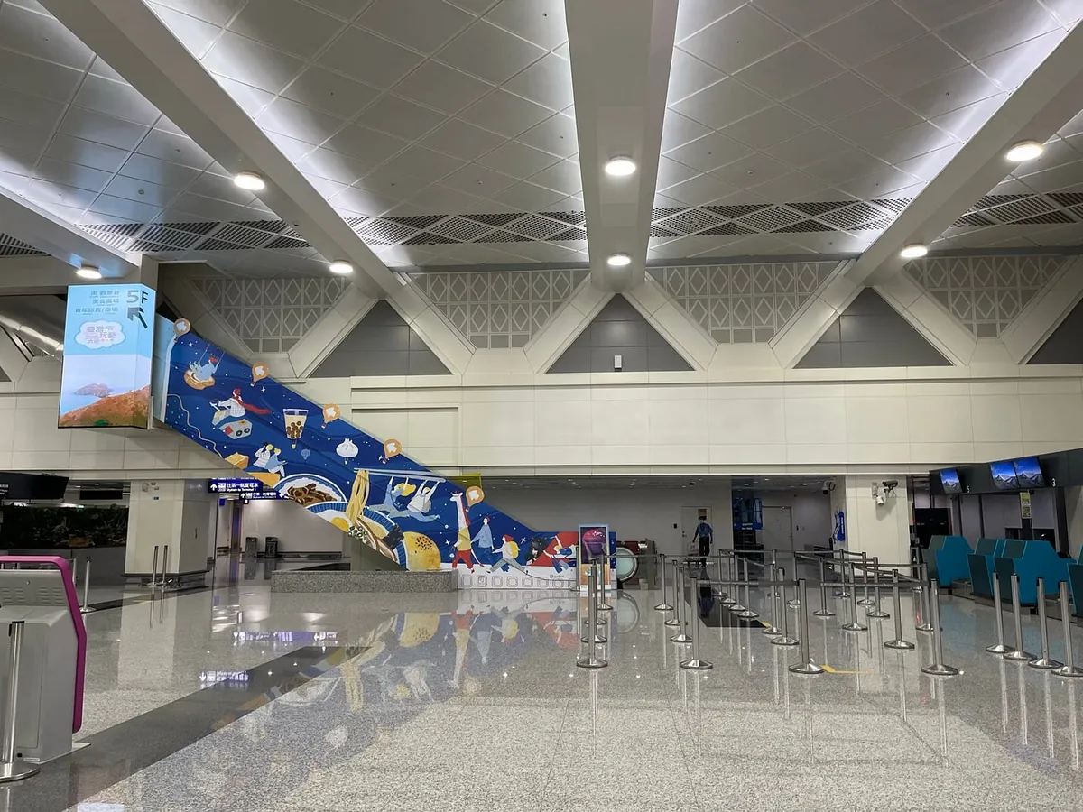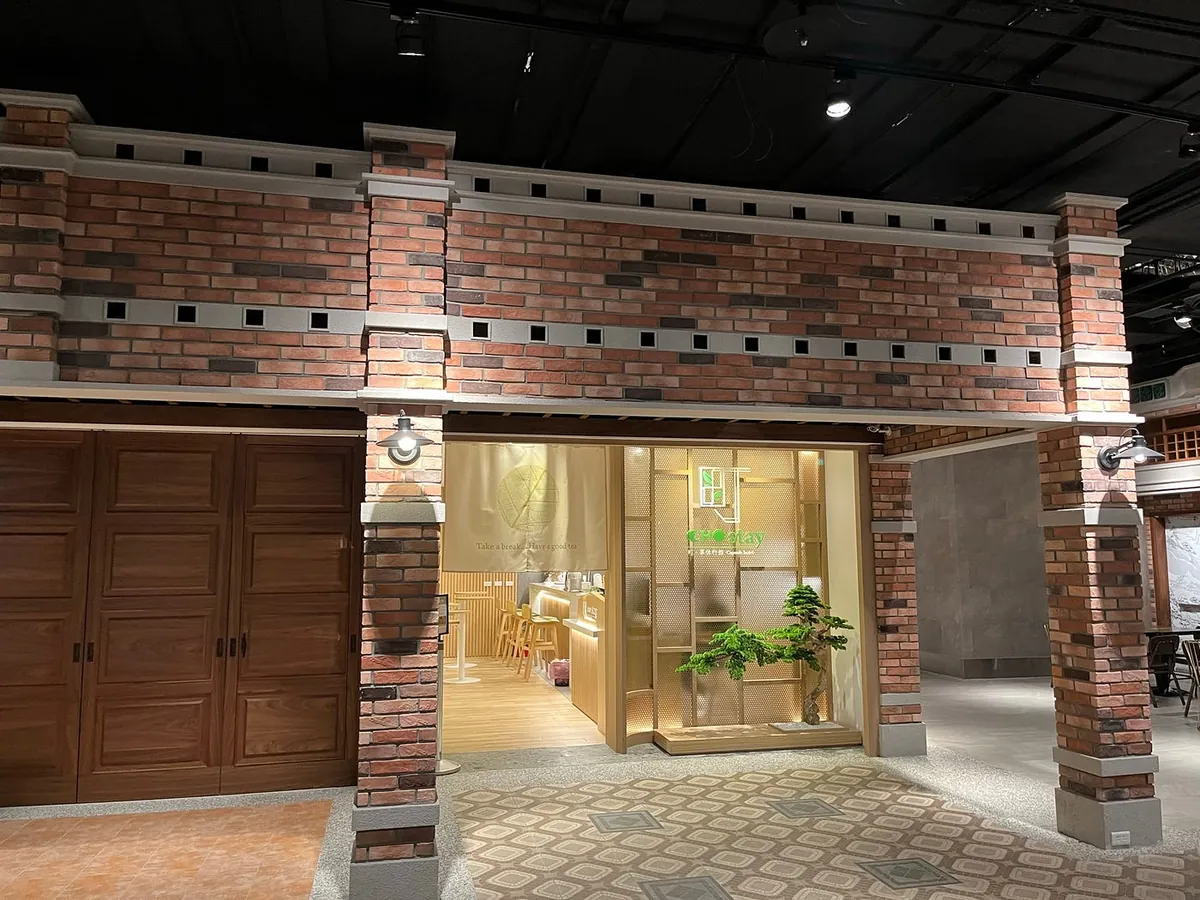 手扶梯一上来就会看到很有台湾风格的旅馆门口