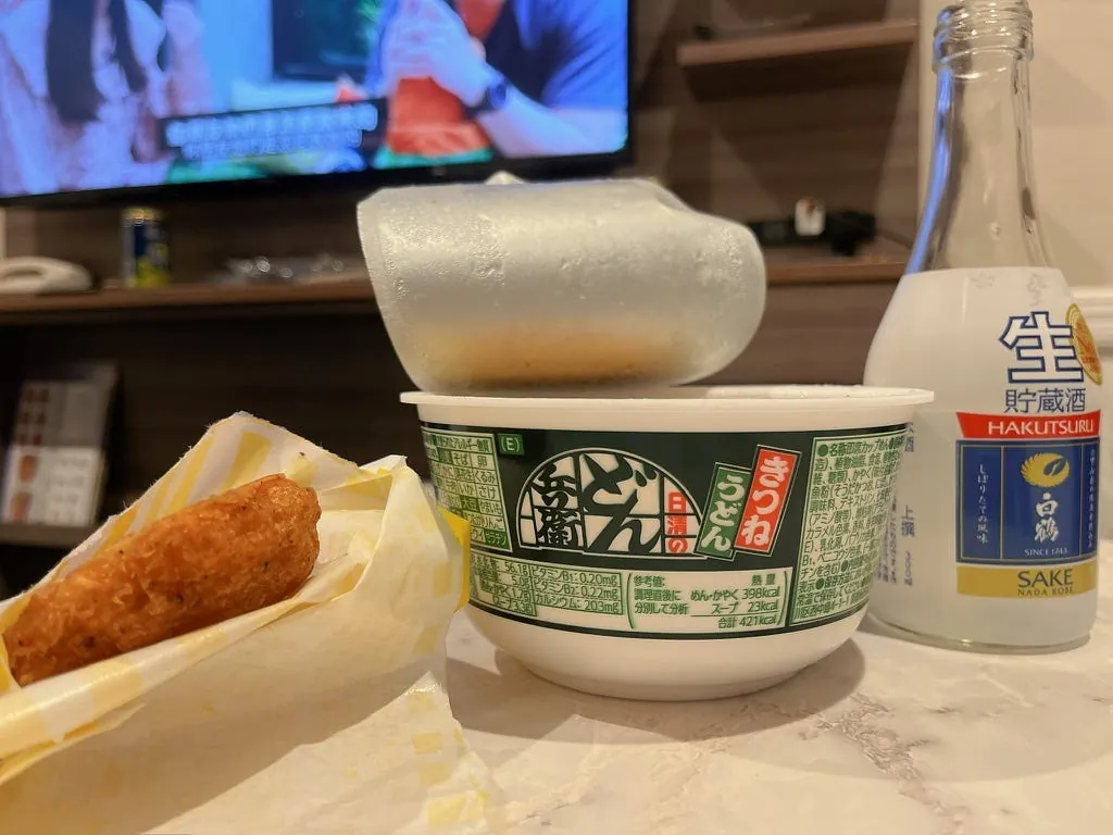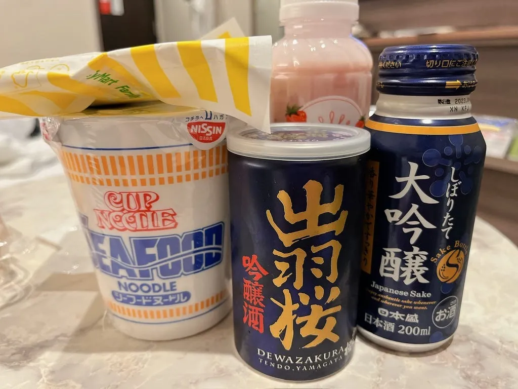 还是日清泡面好吃加上超商炸鸡🤤!前几天买哈密瓜的果肉果汁,今天买草莓的,一样好喝;清酒没印象,这两只应该普普。