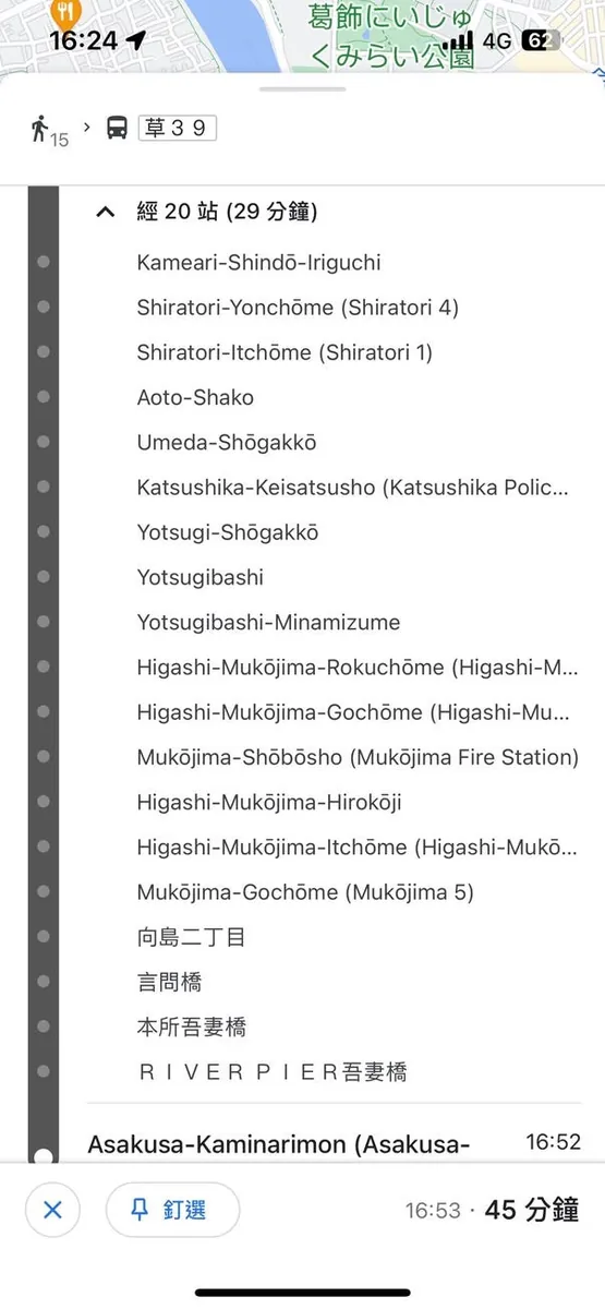 看地图搭公车到浅草比较近,查路线&走到公车站大概花了 15 分钟: