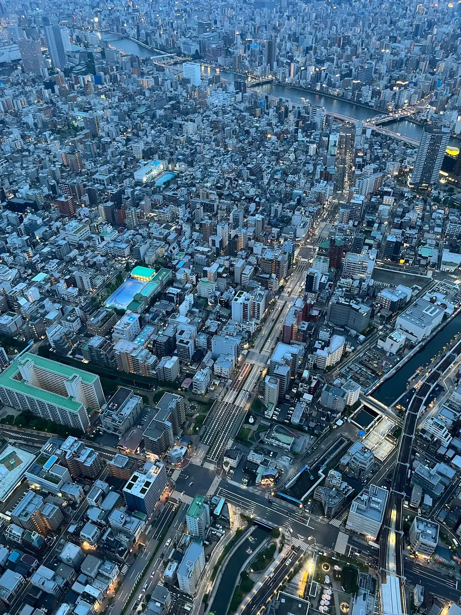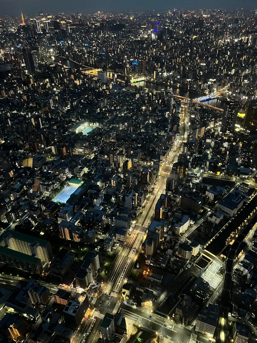 日落后,可以鸟瞰整个东京的夜景,很美: