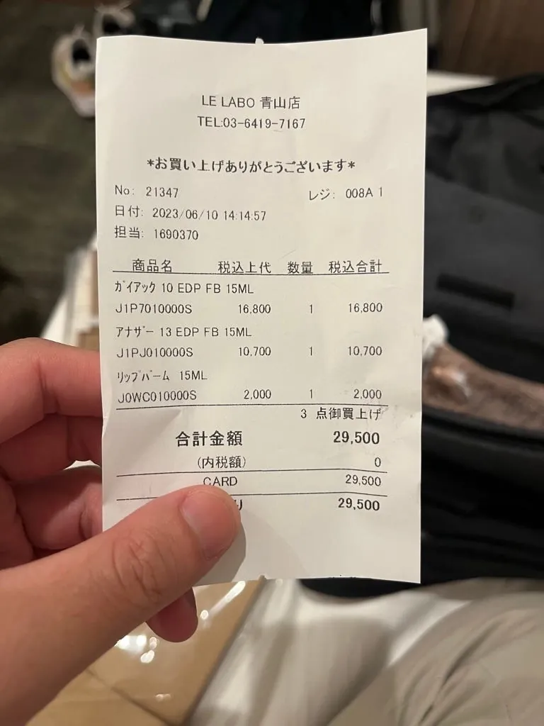 闻了一轮买了 Another 13,味道够浓;还有不免俗跟风买了东京专属的 Gaiac 10,都买 15ml 当纪念。