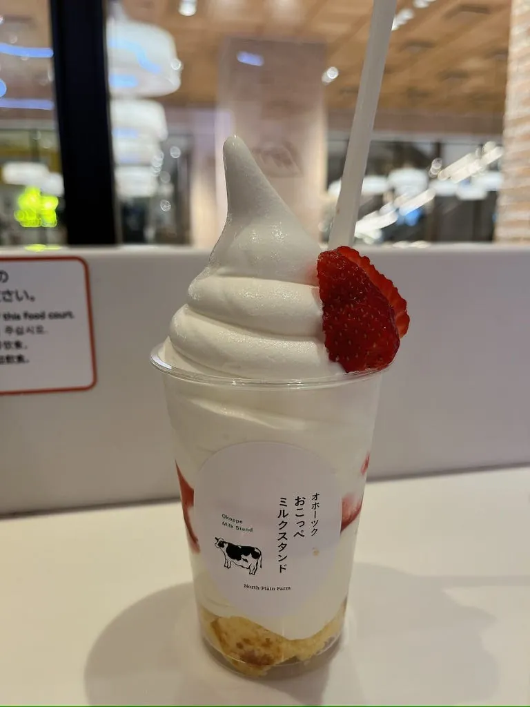 走到晴空塔后,先在里面的商场逛逛,点了杯北海道草莓冰淇淋休息一下。