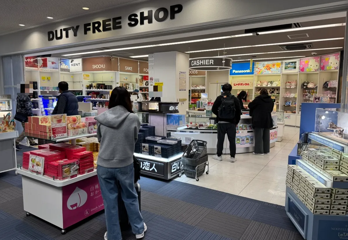 候机室不大,只有一家免税店,有卖一些伴手礼、烟酒品相不多。