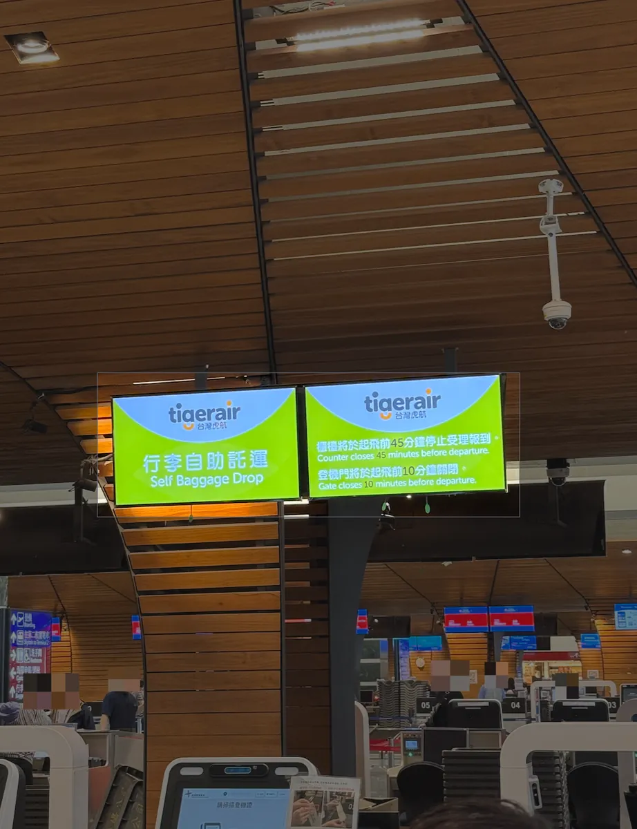 这时候是先从虎航网站使用网路报到的优势就来了,当天目测现场「一般报到」柜台大排长龙,10:20 就已经排满,预估至少要等 45 分钟到 1 小时;「行李自助托运」这边大概花不到 15 分钟就完成手续,节省很多等待时间。
