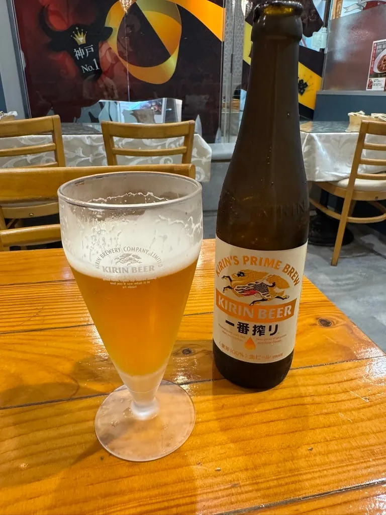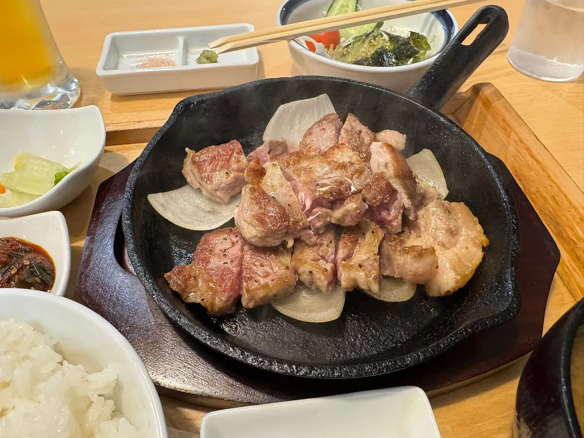 点了一份铁板猪排定食(200g)跟生啤。最后付 2,178 日圆
