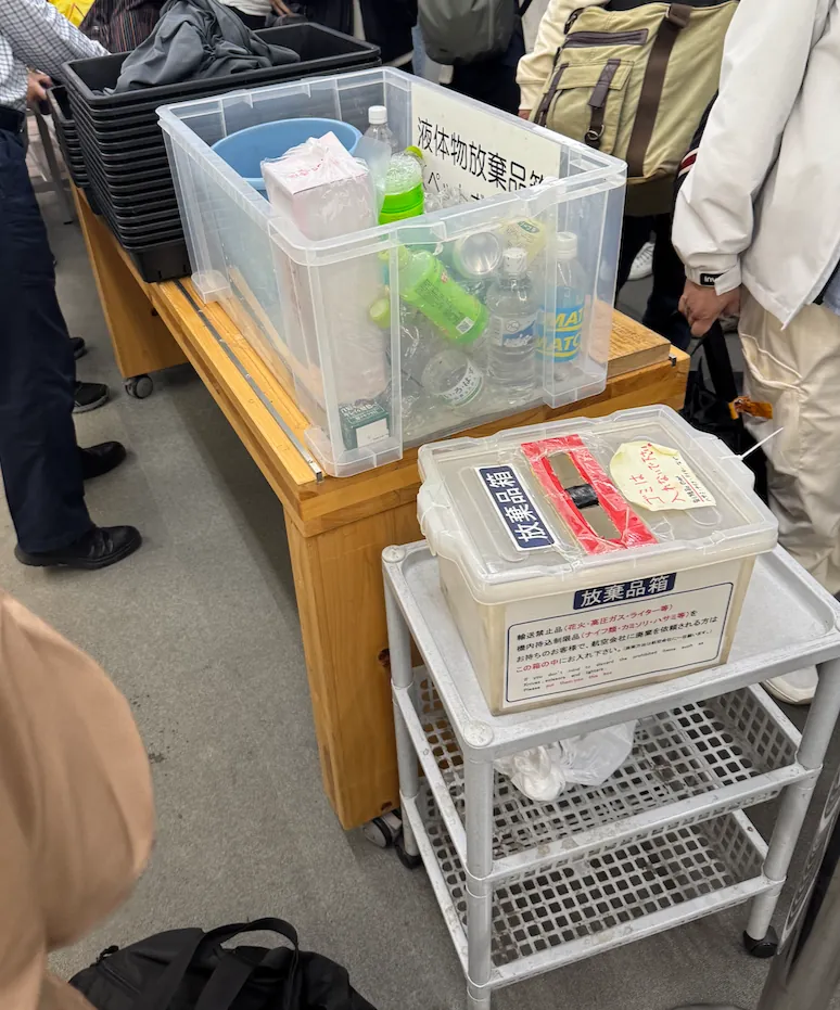 这边是统一排队,要托运的行李过 X 光+会贴封条贴纸、没要托运的就不用(出境前的安全检查会扫描其他的),无托运行李的也要跟著排 ,排到就跟机场人员说没要托运直接过、如果贴完贴纸又打开行李箱就要重新扫描+贴贴纸。⚠️⚠️⚠️