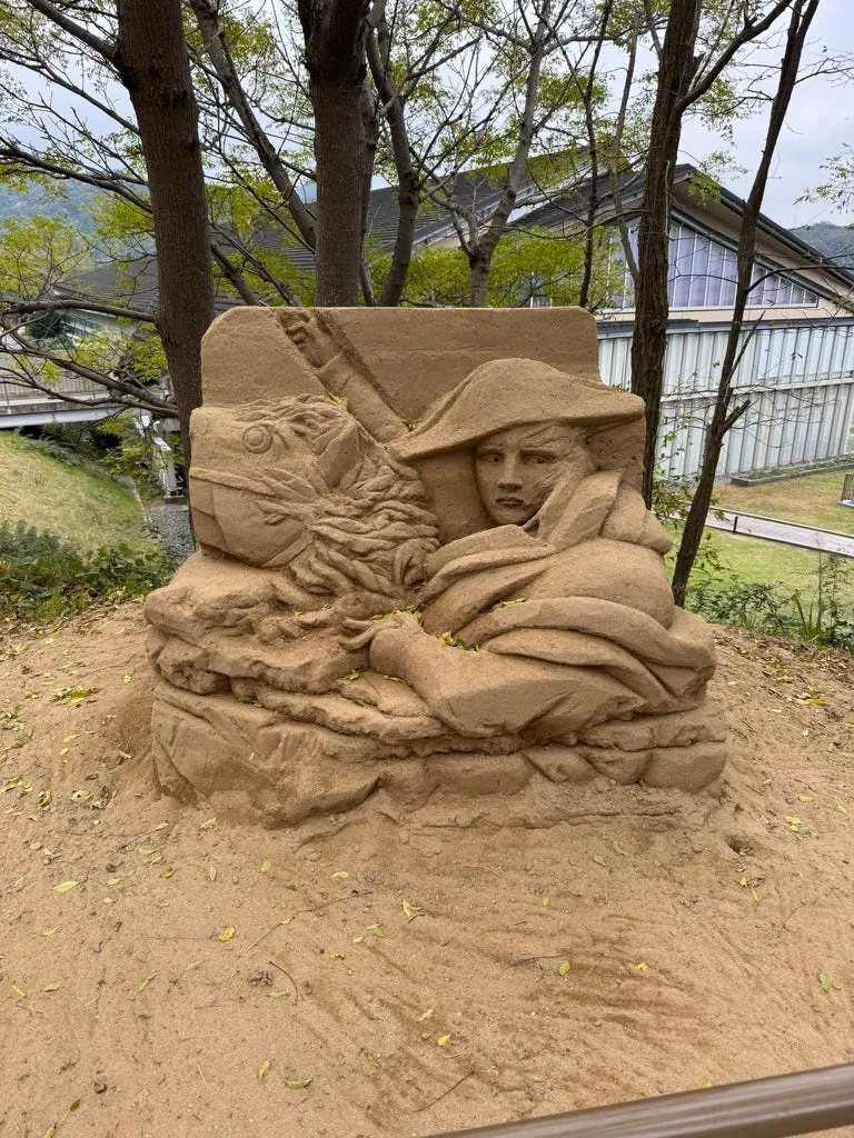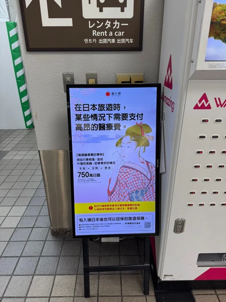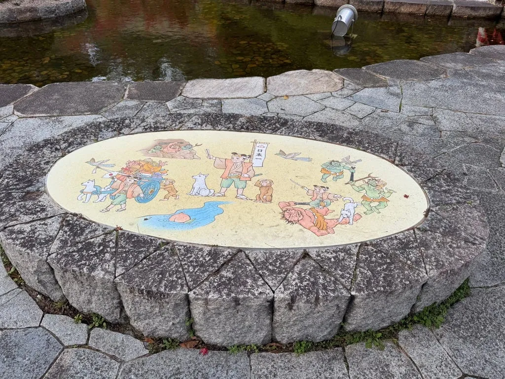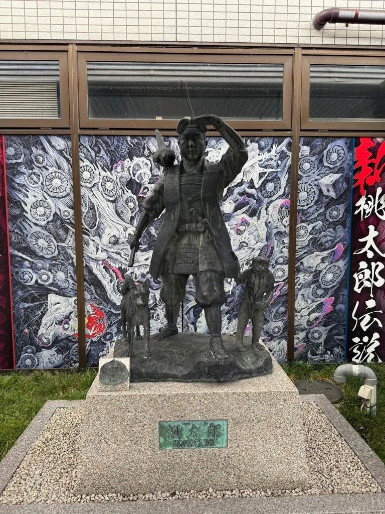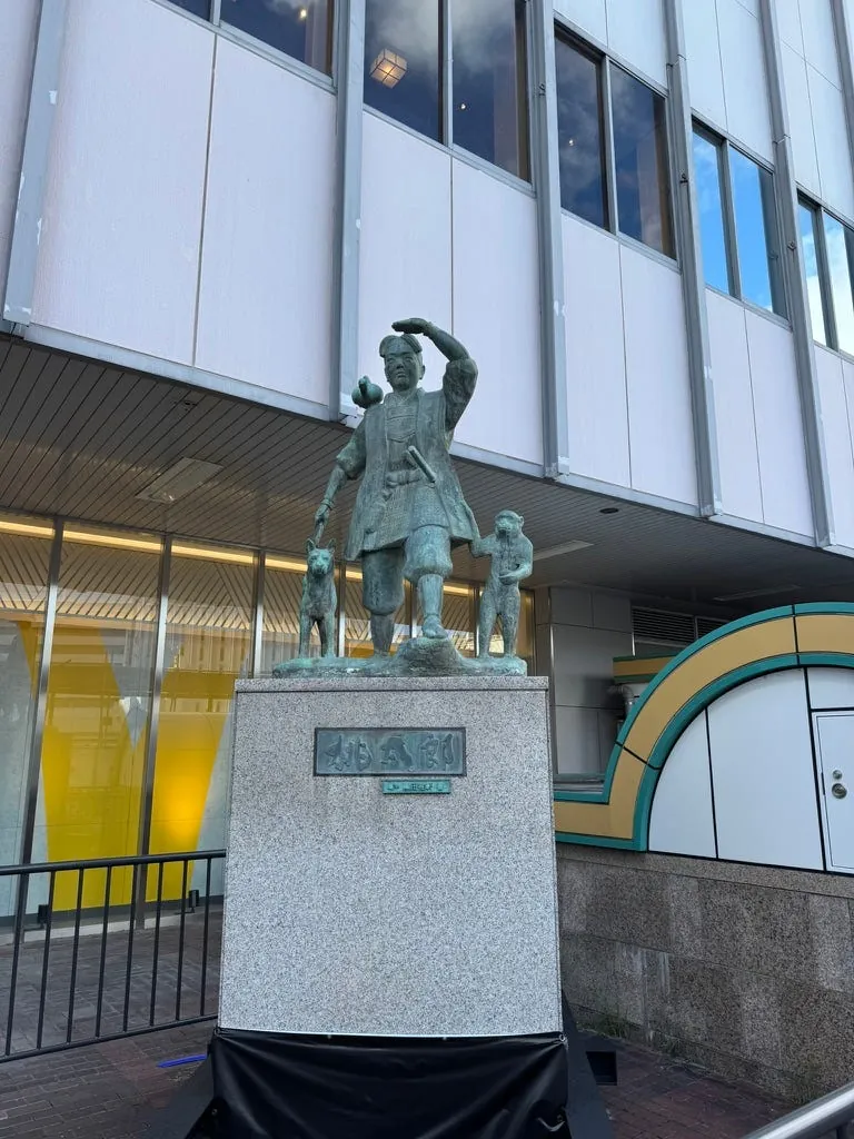 车站外也有一尊桃太郎,另外机场温馨提醒要买保险, 我这次就真的就差点被自行车撞。⚠️