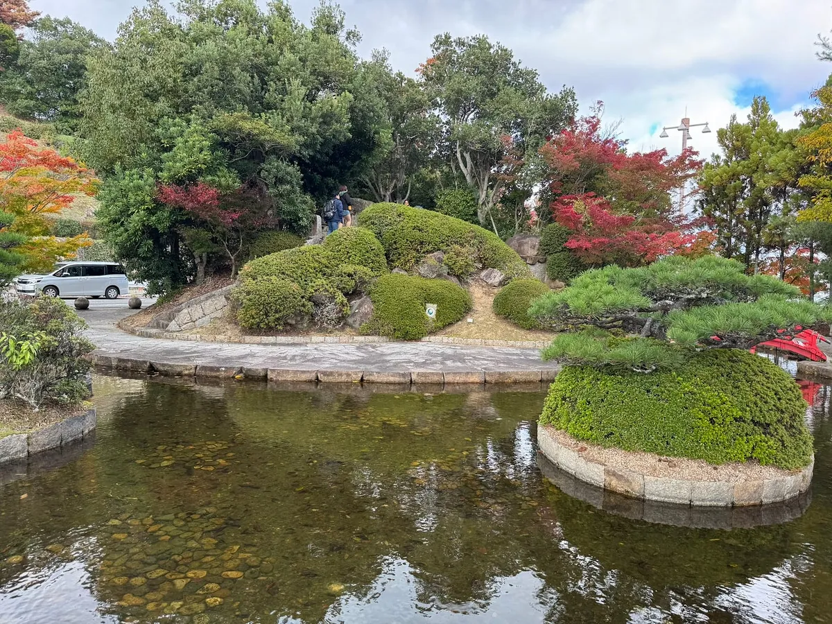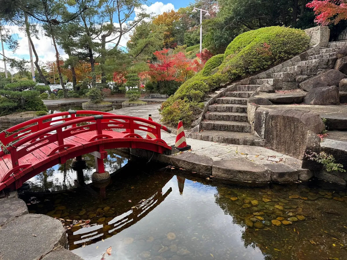 在机场附近乱晃,机场外有一个缩小版的冈山后乐园还有很红的枫叶。