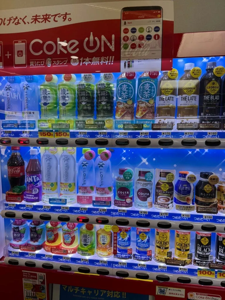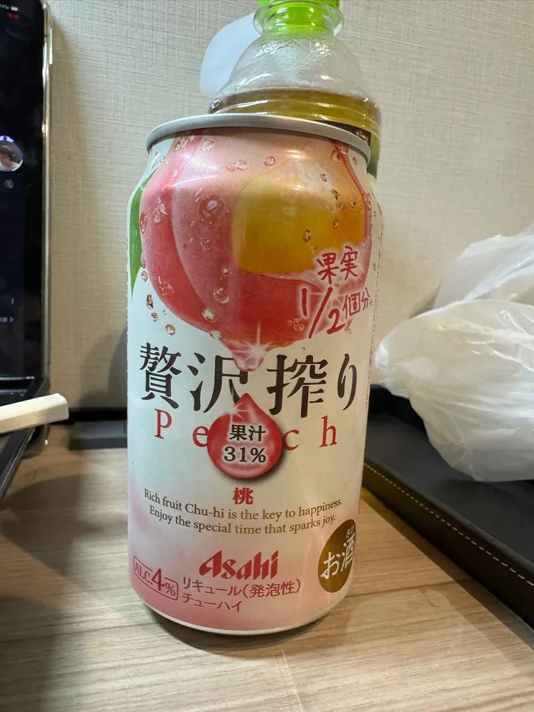 想投几罐桃子水带回台湾,全卖完了;只好投一罐红茶花伝,回来后发现很好喝、不会太甜,后悔没多投几罐。