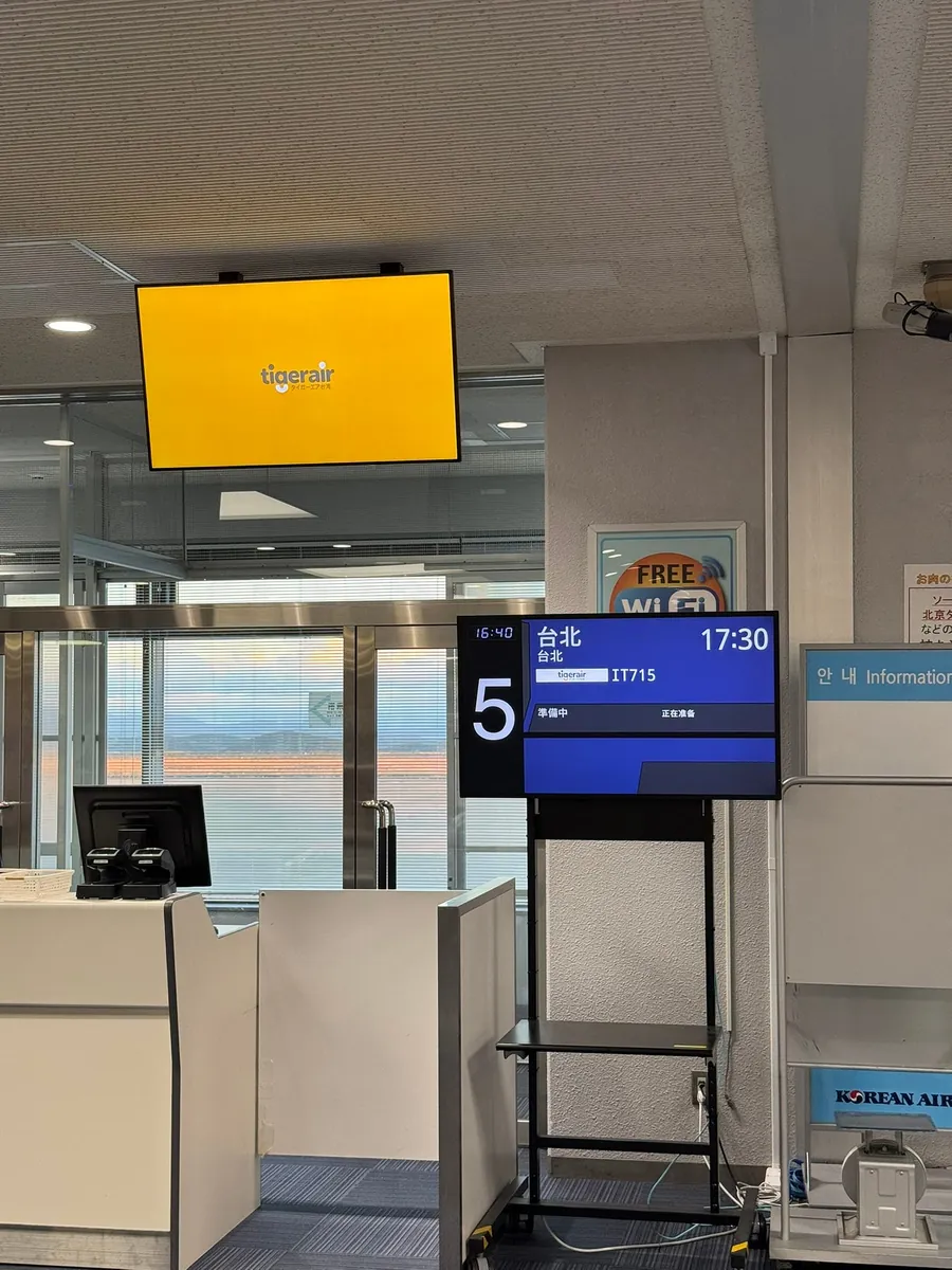 感觉如果赶 15:55 冈山出发,到机场 16:25 的交通车,如果能准时抵达,基本上报到托运那边已经全空了可以直接办理,然后再上来直接排出境安检应该是来得及的。