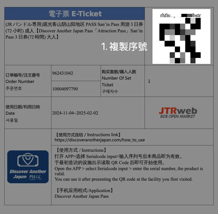 🚅行- 日本 JR PASS|关西&山阴地区铁路周游券|eMCO 电子票