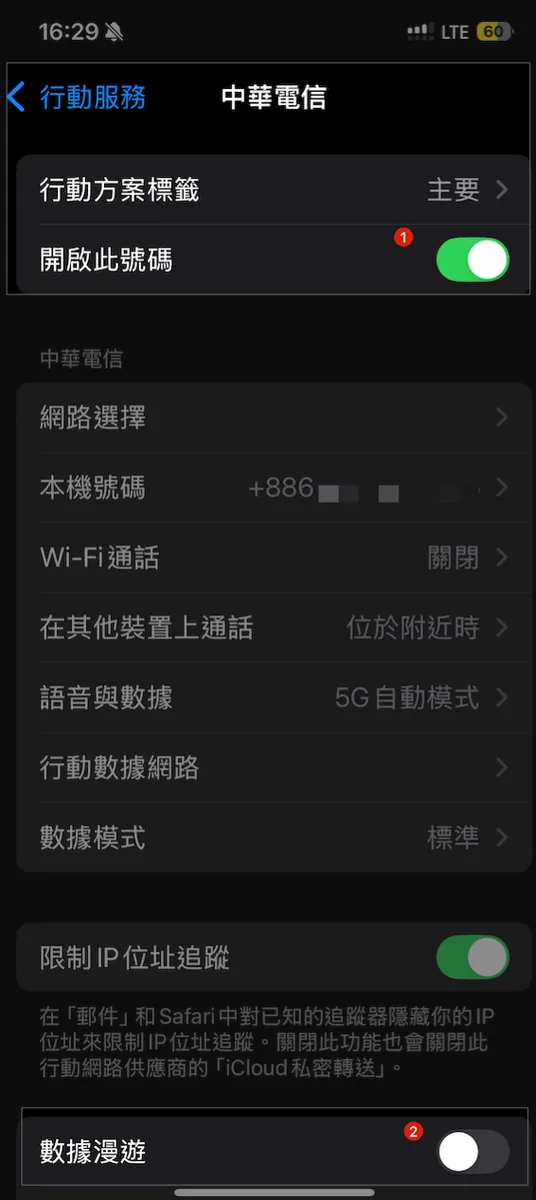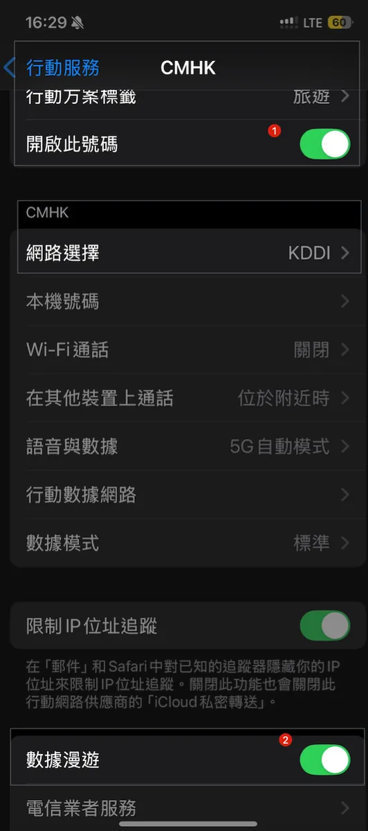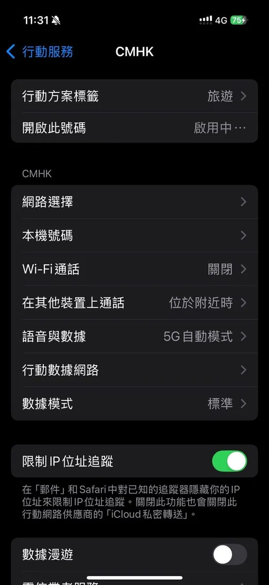 没事先处理一下两个网路问题,第一个是我的 中华电信漫游功能是关闭的 ,有需要漫游方案无法直接购买;所以先打电话去中华电信解锁漫游功能,以备不时之需。