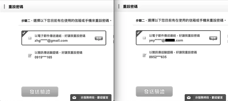 - 再輸入想入侵帳號的信箱,一樣進行重設密碼操作
