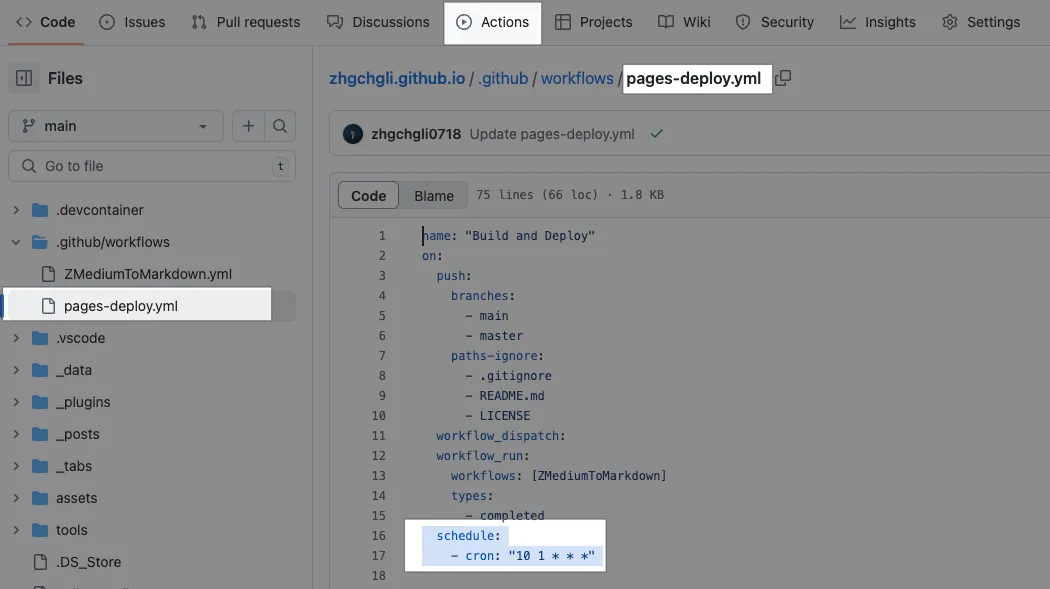最後在 Github Pages Repo 上的 Actions 加上排程定時自動重新產生網站,就完成了:
