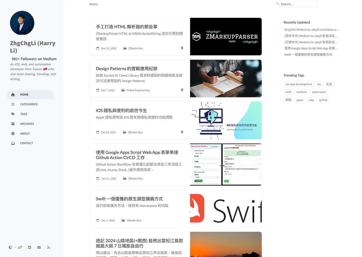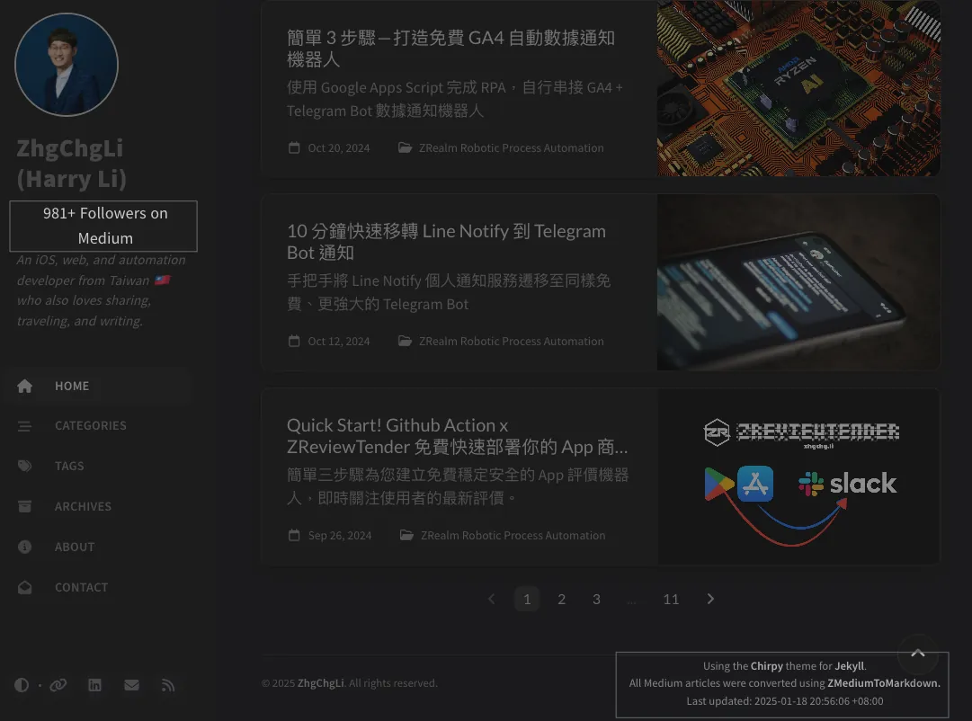 近期才下定決心要解決 Jekyll (Chirpy Theme) 問題、升級版本、順手重新優化快速部署工具 ZMediumToJekyll 。