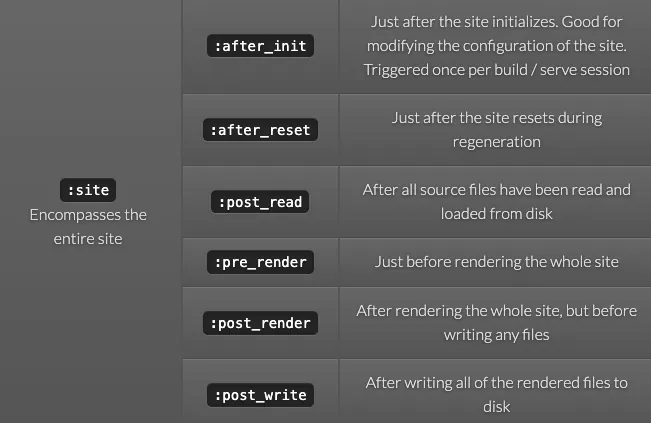 Hook 事件 有很多,這邊只附上我用到的 site:pre_render 跟 post:pre_render