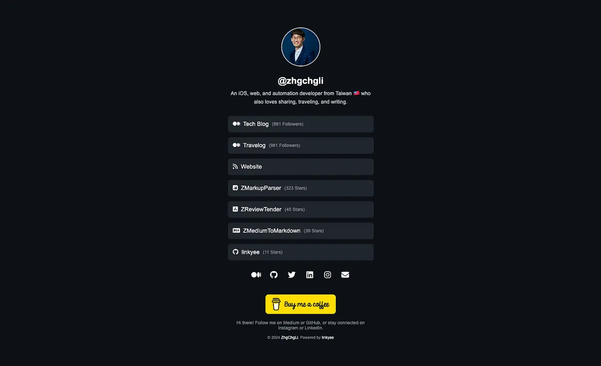 上個月也參考這個專案的方式,做了一個新的開源專案 — Linkyee 開源版的 Link Tree 個人連結頁面。