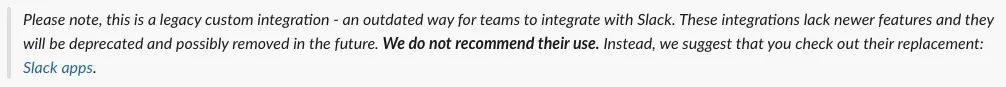請注意官方建議使用新的 Slack APP Bot API 的 chat.postMessage 來傳送訊息,Incoming Webhook 簡便的這個方式之後會棄用,這邊偷懶沒有使用,可搭配下一章「匯入員工名單」會需要 Slack App API 一起調整成新方法。