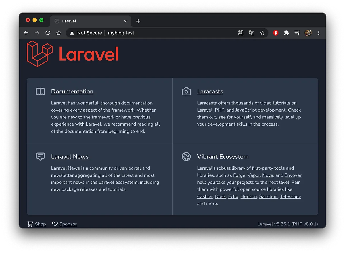 在瀏覽器輸入 http://myblog.test 測試是否正確建立&運行: