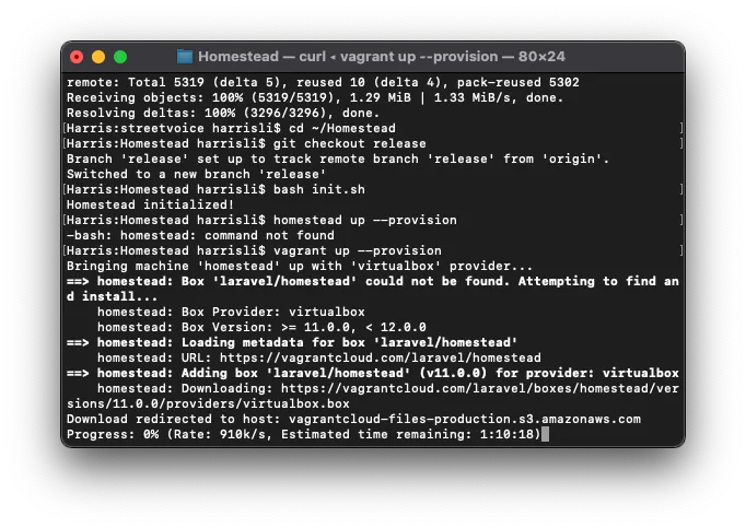 第一次啟動,需要下載 Homestead 環境包,需要較長的時間。