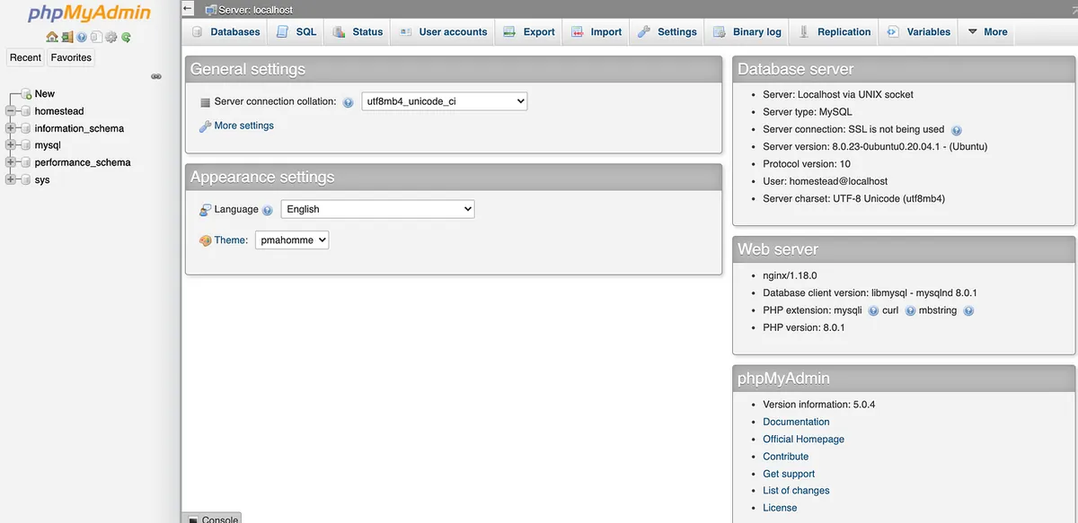 IP: 預設是192.168.10.10可改可不provider:預設是virtualbox,如果用 Parallels 才需要改folders:新增 - map: ~/Homestead/phpMyAdmin to: /home/vagrant/phpMyAdminsites:新增 - map: phpMyAdmin.test to: /home/vagrant/phpMyAdmin